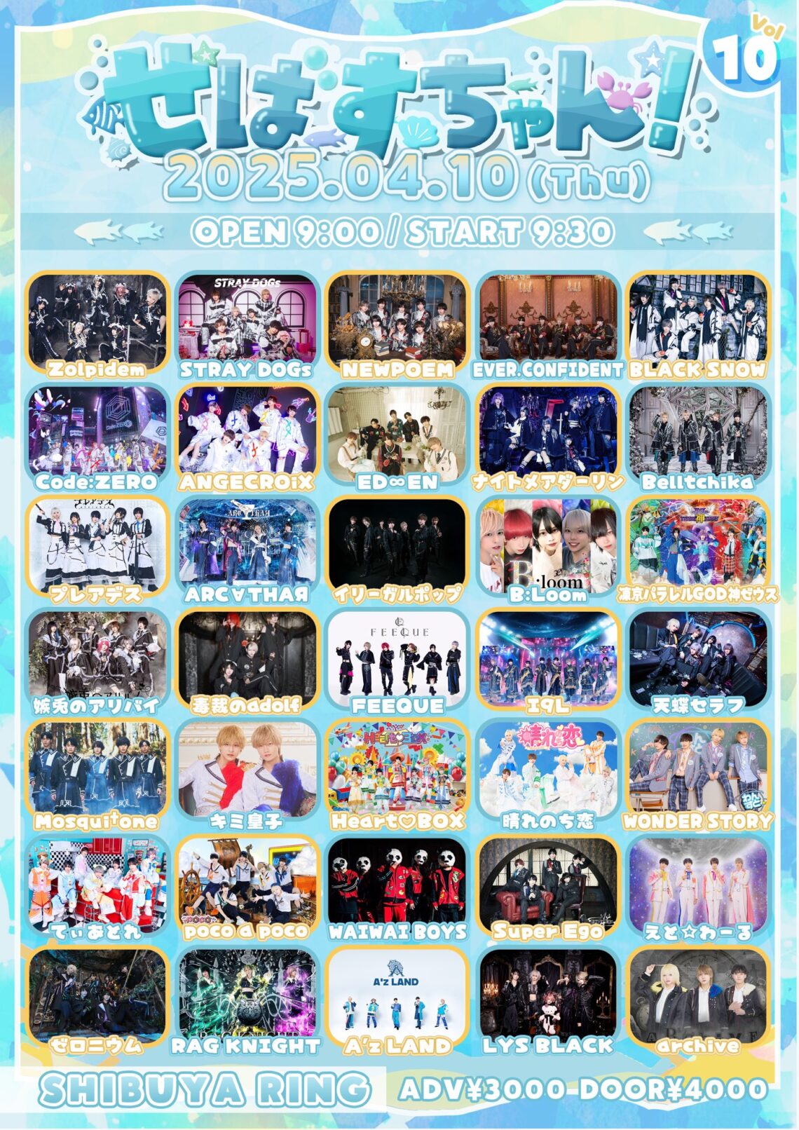 ▼出演 : Zolpidem/STRAY DOGs/NEWPOEM/EVER.CONFIDENT/BLACK SNOW/Code:ZERO/ANGECROIX/ED∞EN/ナイトメアダーリン/Belltchika/プレアデス/ARC∀THAЯ/イリーガルポップ/B:Loom/凍京パラレルGOD神ゼウス/嫉兎のアリバイ/独裁のadolf/FEEQUE/I9L/天蝶セルフ/Mosqui†one /キミ皇子/Heart♡BOX/晴れのち恋/WONDER STORY/てぃあとれ/poco a poco/WAIWAI BOYS/Super Ego/えと⭐︎わーる/ゼロニウム/RAG KNIGHT/A’zLAND/LYS BLACK/archive