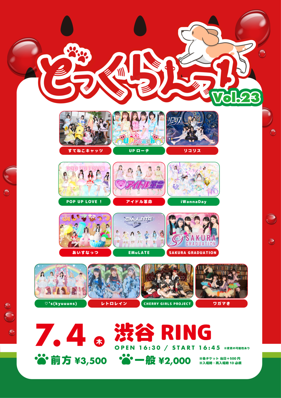 すてねこキャッツ/UPローチ/アイドル革命/EMuLATE/あいすなっつ/リコリス/レトロレイン/♡’s(kyuuuns)/POP UP LOVE!/SAKURA GRADUATION/CHERRY GIRLS PROJECT/iWannaDay/ワガマき