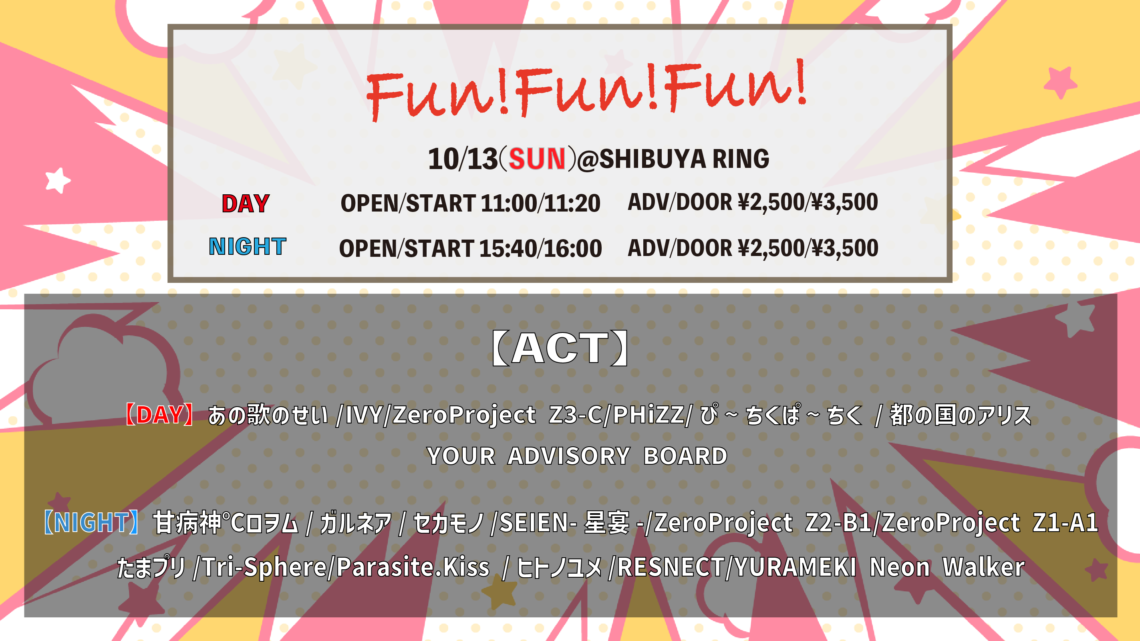 ■ 出演 あの歌のせい / IVY / ZeroProject Z3-C / ぴ〜ちくぱ〜ちく / PHiZZ / 都の国のアリス / YOUR ADVISORY BOARD