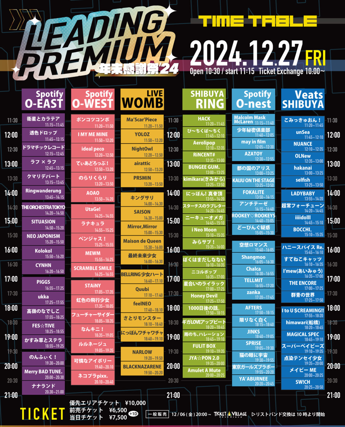 ※出演者変更、タイムテーブル変更などに伴う払い戻しはございません。