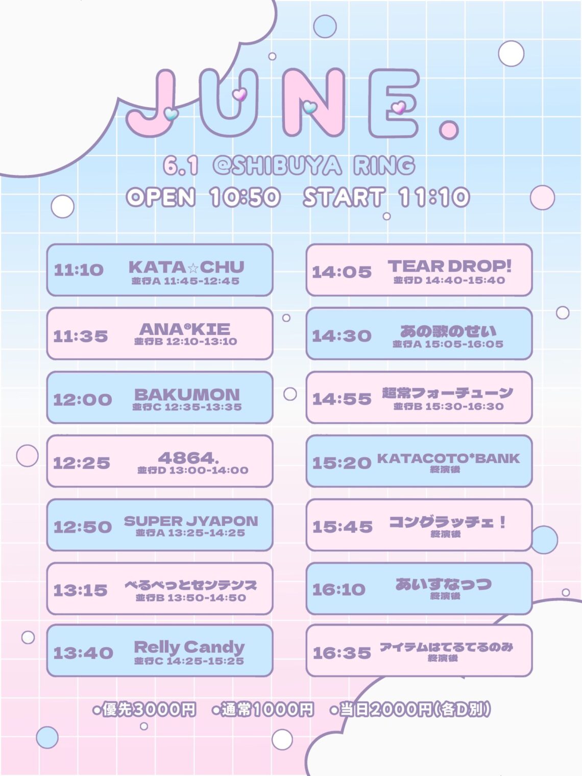 ▶出演:TEAR DROP!、SUPER JYAPON、アイテムはてるてるのみ、KATACOTO*BANK、4864.、ANA®KIE、BAKUMON、KATA☆CHU、コングラッチェ!、Relly Candy、あの歌のせい、あいすなっつ、べるべっとセンテンス、超常フォーチューン