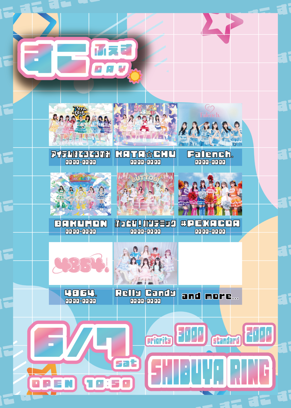 ▶出演者:アイテムはてるてるのみ、KATA☆CHU、Falench.、BAKUMON、ぶっとび!パンデミック、#PEXACOA、4864.、Relly Candy