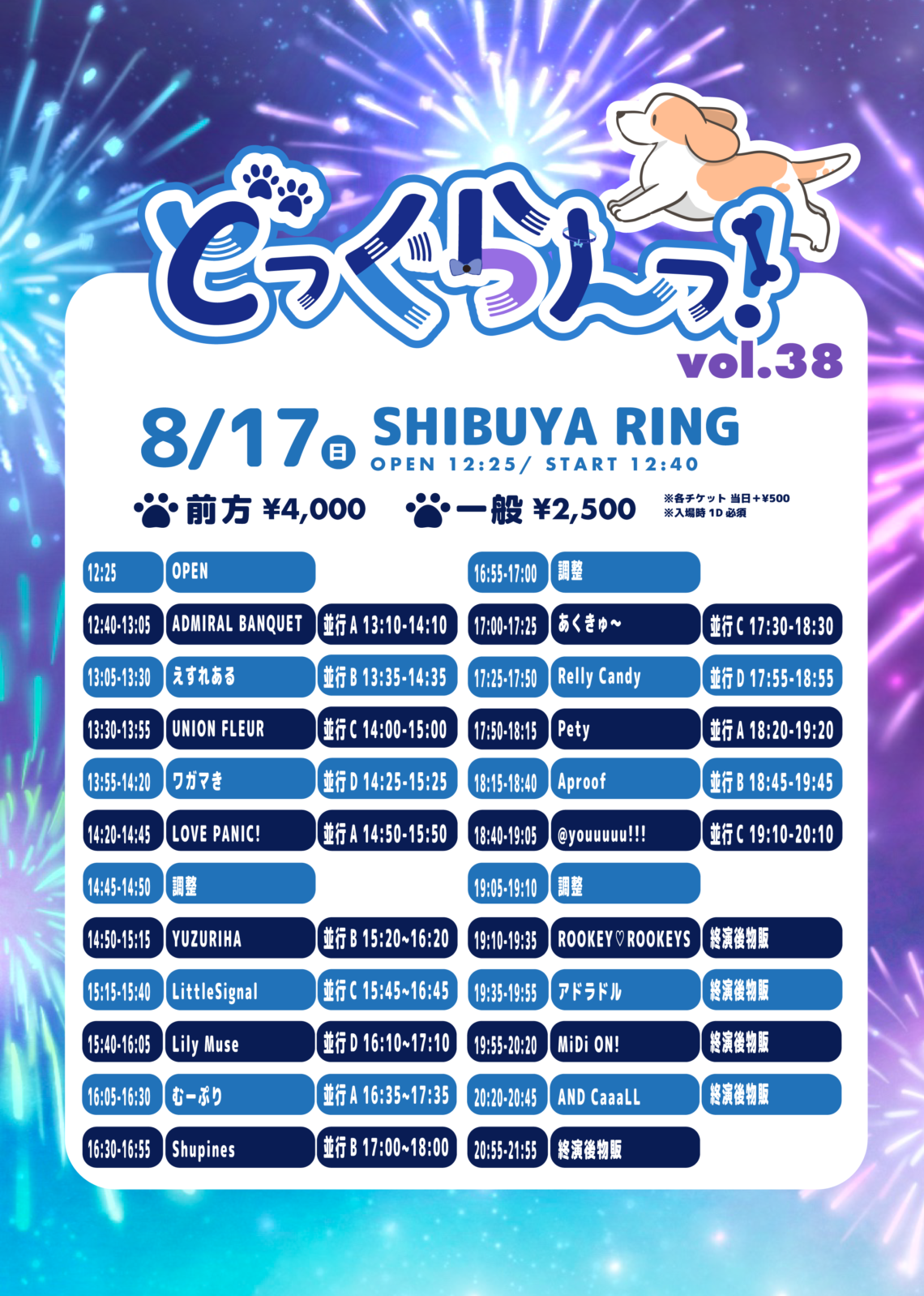 AND CaaaLL/ROOKEY♡ROOKEYS/MiDi ON!/Lily Muse/Shupines/アドラドル/Relly Candy/YUZURIHA/@youuuuu!!!/Aproof/ワガマき/あくきゅ〜/むーぷり/ADMIRAL×BANQUET/UNION FLEUR/LOVE PANIC!/えすれある/Pety/LittleSignal