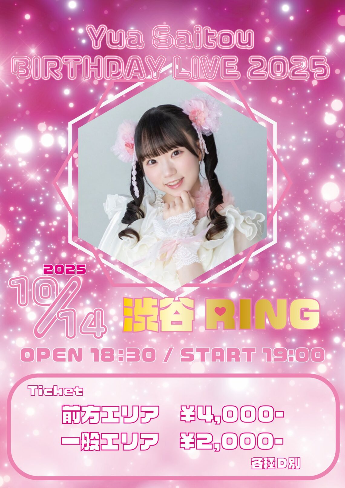 入場時ドリンク代が別途かかります。 ※入場順 : S→A→当日