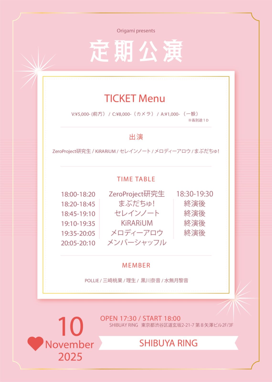 Cチケット:8000円(段差後ろ)