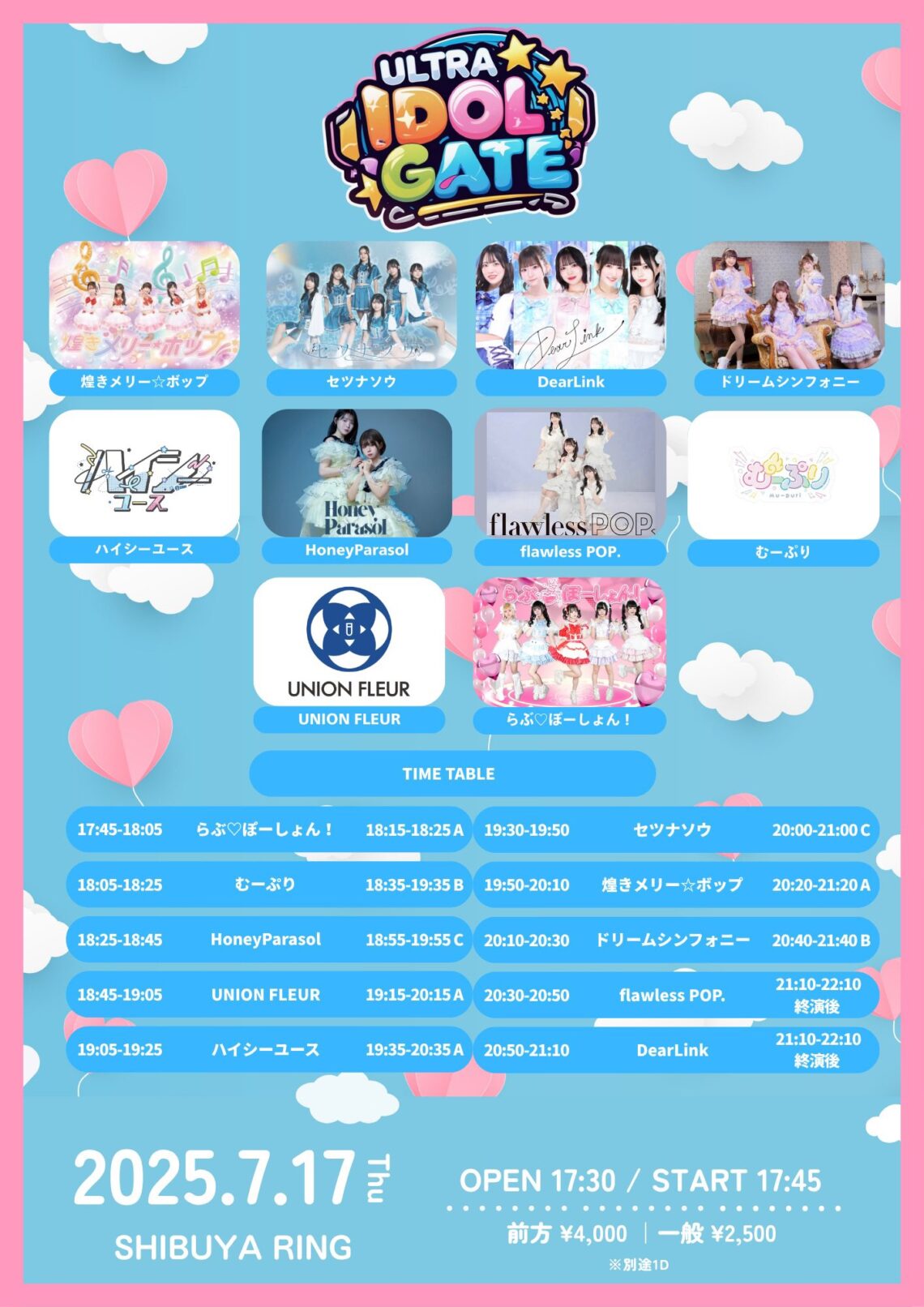 出演:煌きメリー☆ボップ/セツナソウ/DearLink/ドリームシンフォニー/ハイシーユース/HoneyParasol/flawless POP./むーぷり/らぶ♡ぽーしょん!/UNION FLEUR/